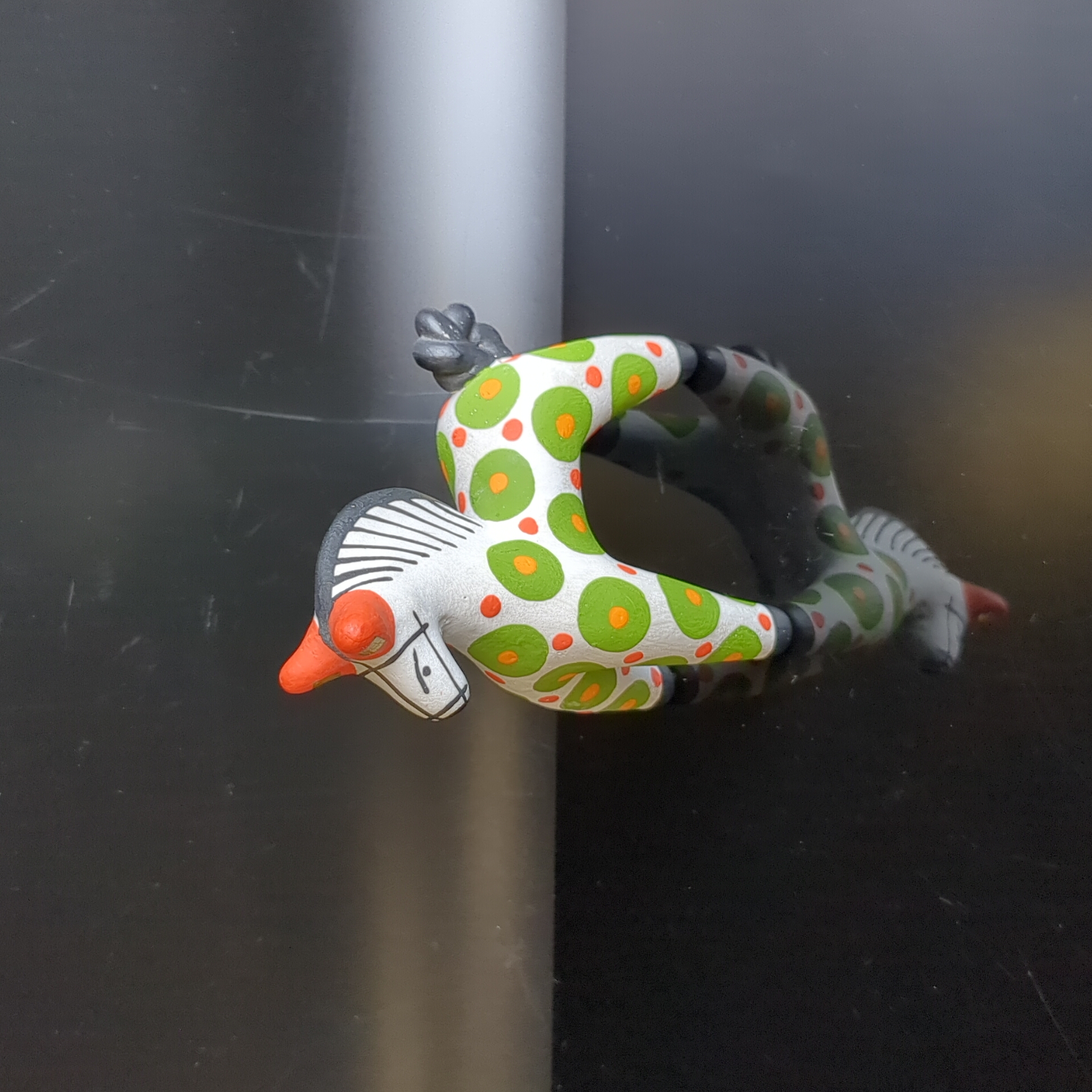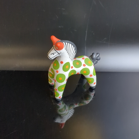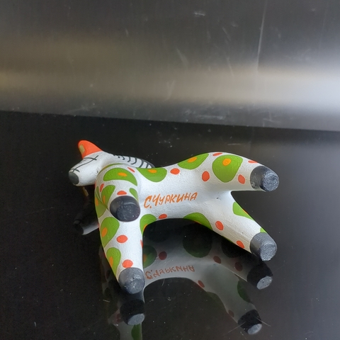 Статуэтка Авторская дымковская игрушка Конь, С. Чуркина. Высота 9,7 см. ручная роспись, сусальное золото. Киров-Вятка, винтаж 1980-1990 гг. Чуркина Светлана Федоровна. Член ВТОО «Союз художников России» (1993). Родилась 26 апреля 1956 года в г. Кирове.. Работает в промысле с 1977 года. Училась у А. Ф. Попывановой. Игрушки мастерицы хранятся в коллекциях музеев России и частных коллекциях. Дымковская игрушка – один из самых известных промыслов русской народной игрушки. Он возник в слободе Дымково Вятской губернии. Дымковскую игрушку лепят из красной глины, смешанной с просеянным речным песком. Сервантное хранение, присутствуют следы использования - состояние на фото