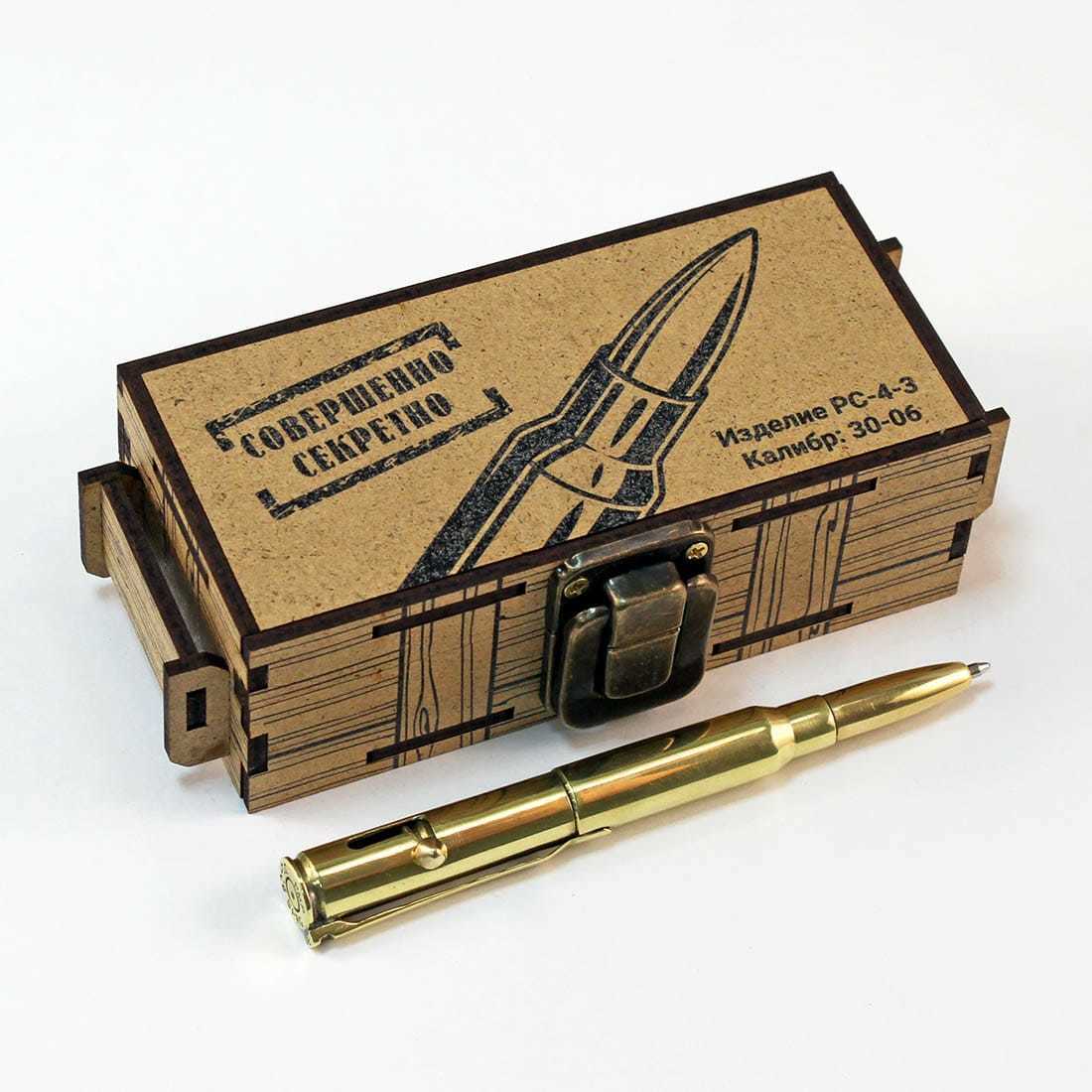 Авторучка из настоящих патронов стилизованная в коробку под оружейный ящик