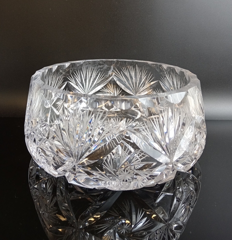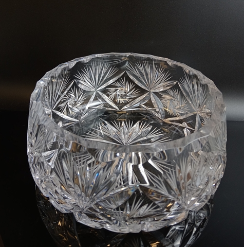 Ваза для фруктов хрустальная с геометрическим узором , алмазная грань, винтаж СССР 1970-1990 гг. Высота - 10.5 см, диаметр - 19.5 см. Присутствуют следы использования - состояние на фото