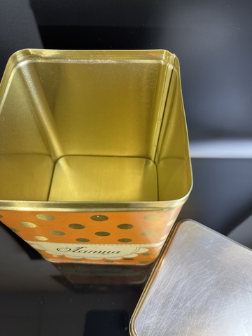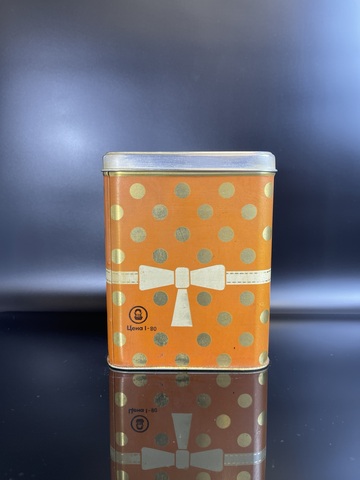 Банка жестяная "Лапша" для хранения фартук в горох, советский винтаж СССР 1960-1990 гг. Высота - 15.5 см, ширина -12 см.