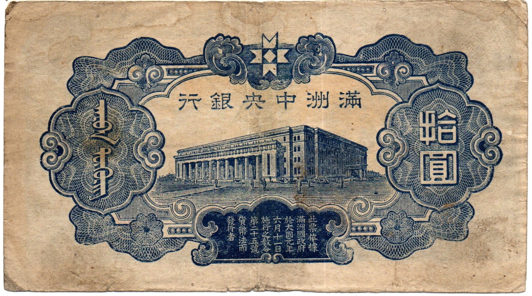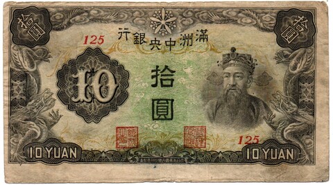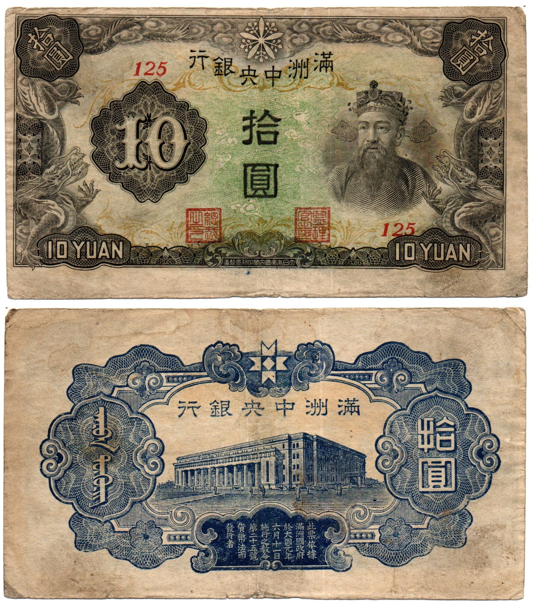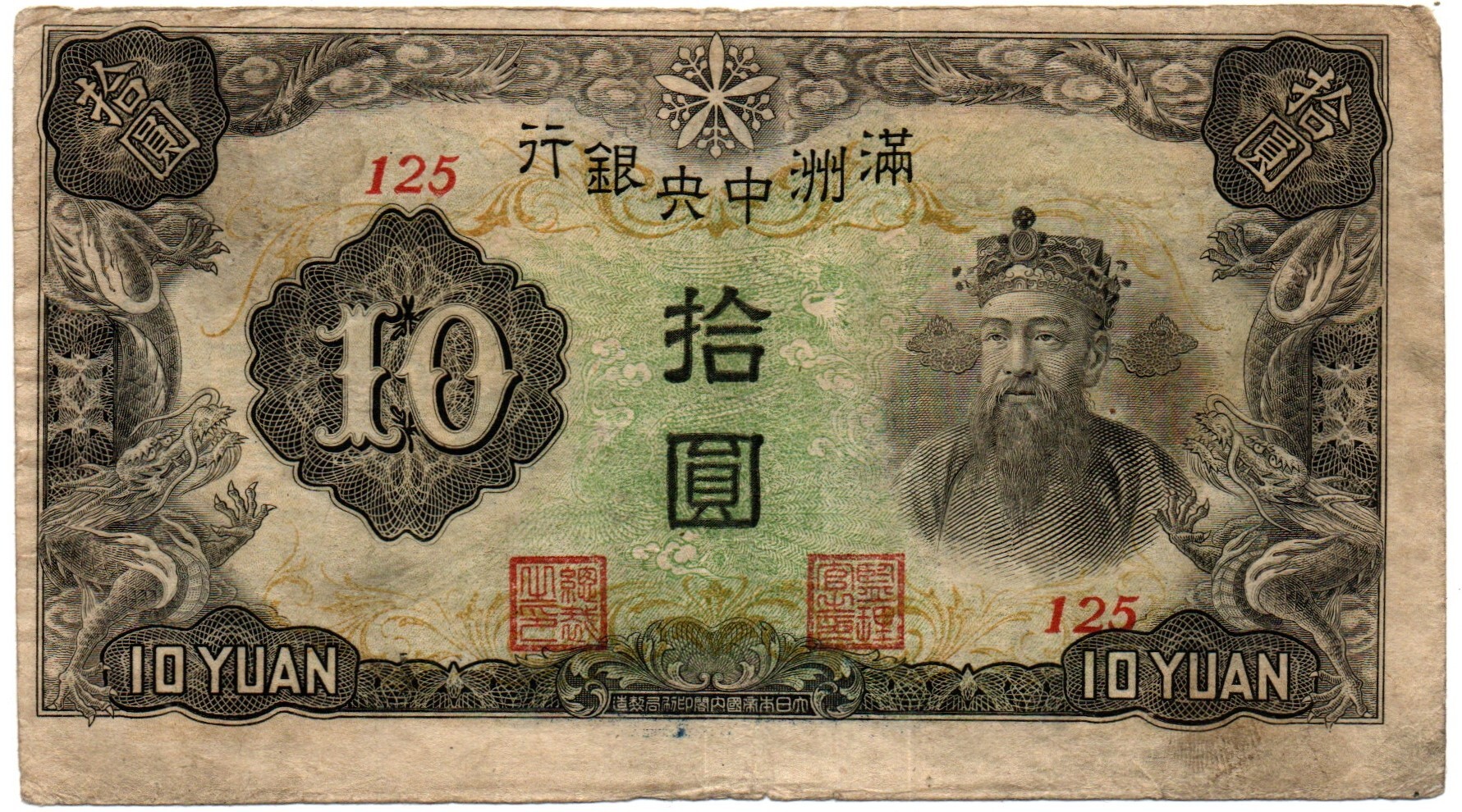 Банкнота 10 юаней - Манчжурия Манчжоу-го - 1944 год - Серия 125 - Японская оккупация