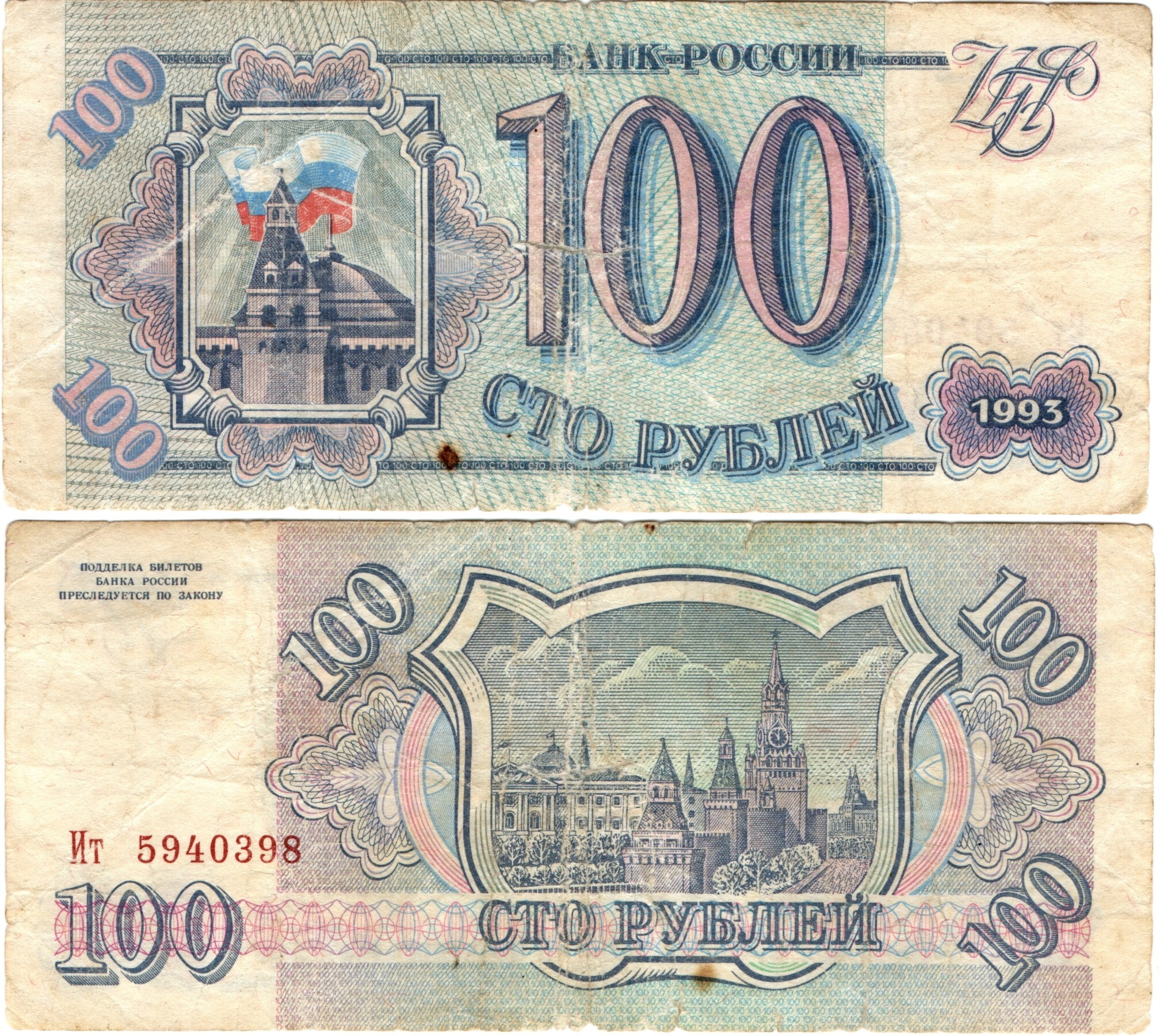 Банкнота 100 рублей 1993 VG