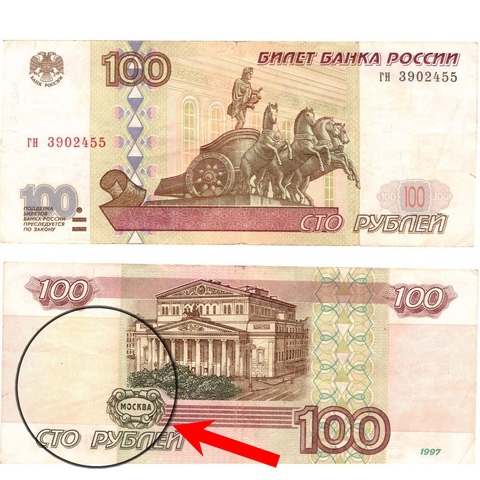 Банкнота 100 рублей 1997 год (Без модификации) VF-XF