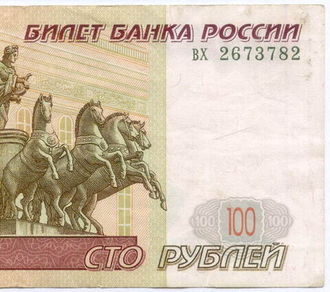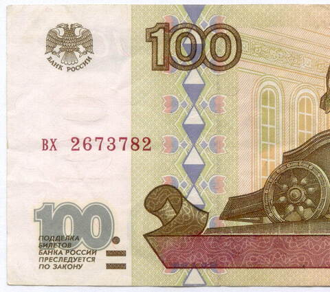 Банкнота 100 рублей 1997 год (без модификаций) вх 2673782. VF
