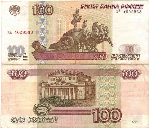 Банкнота 100 рублей 1997 год Модификация 2001 год XF. Подобная сохранность. Серия и номер случайные.