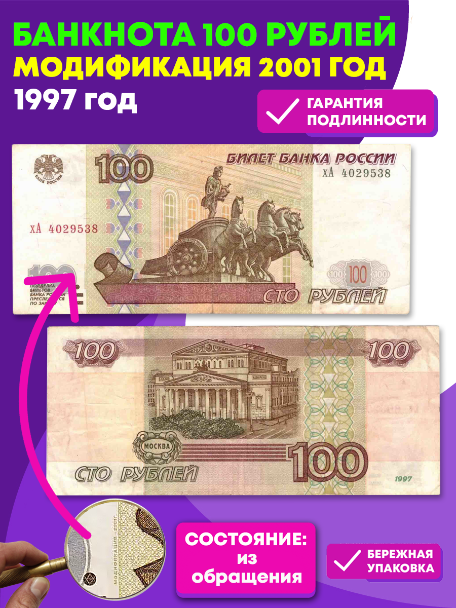 Банкнота 100 рублей 1997 год Модификация 2001 год XF
