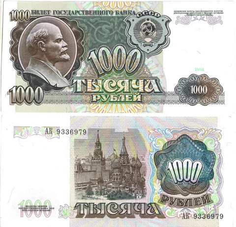 Банкнота 1000 рублей 1991 год (XF-AU)