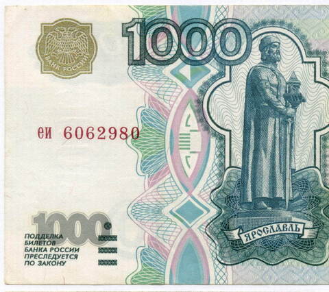 Банкнота 1000 рублей 1997 год (без модификаций) еи 6062980. VF+