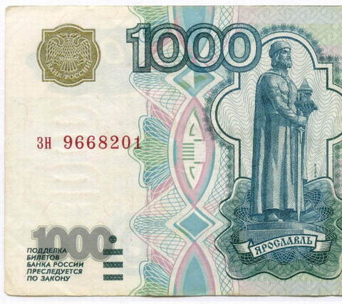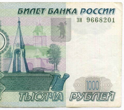 Банкнота 1000 рублей 1997 год (без модификаций) зн 9668201. VF