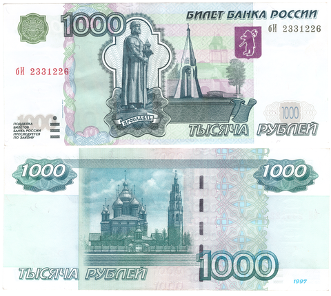 Банкнота 1000 рублей 1997 год. Модификация 2004 года VF