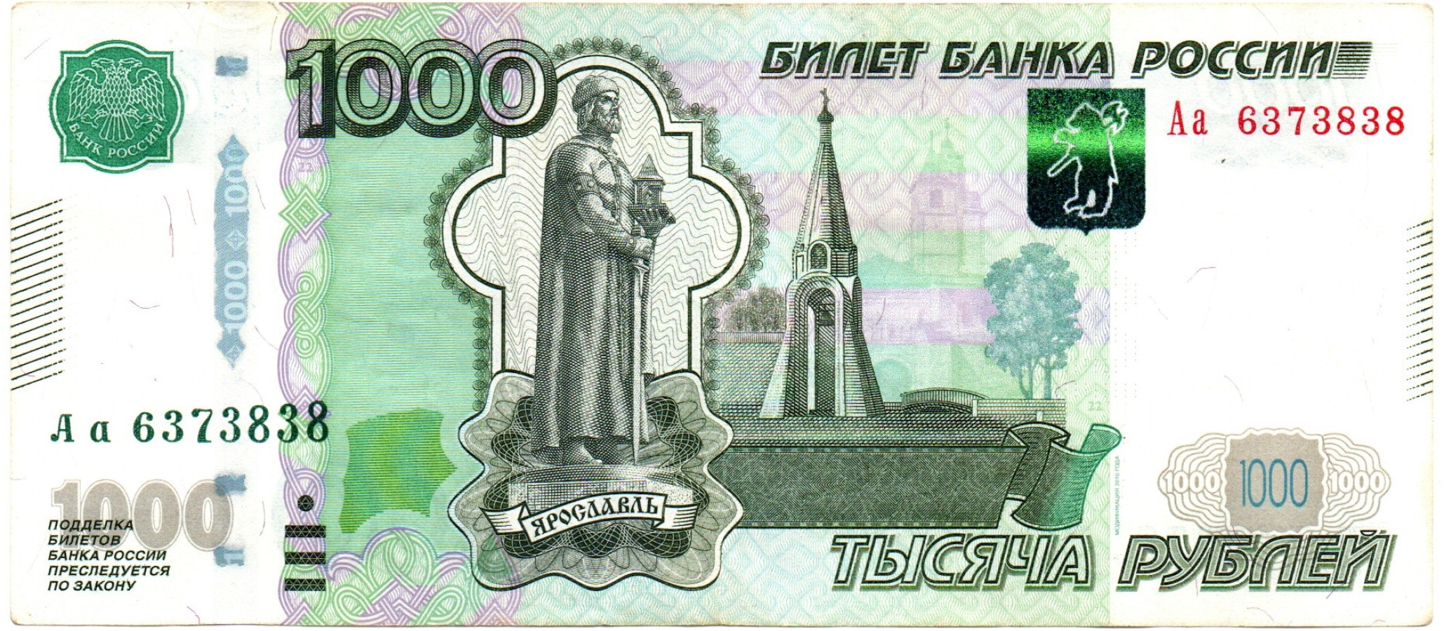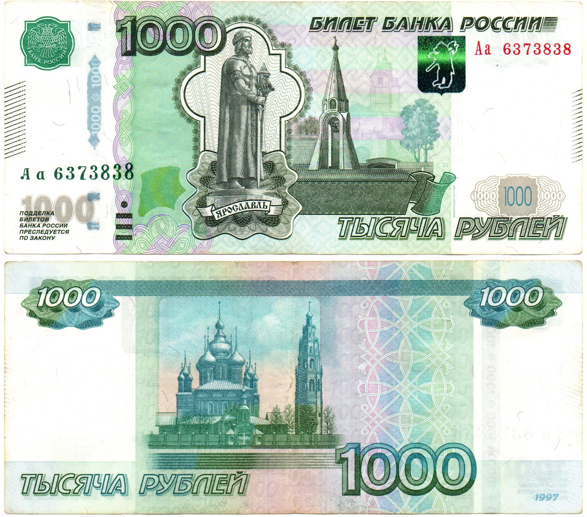 Банкнота 1000 рублей 1997 год. Модификация 2010 года. Серия Аа 6373838