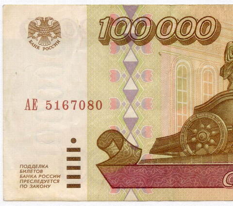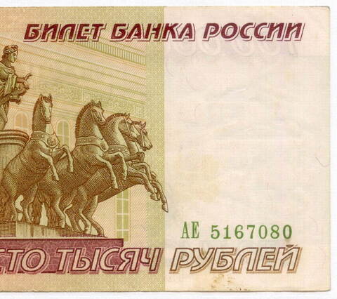 Банкнота 100000 рублей 1995 год АЕ 5167080. VF