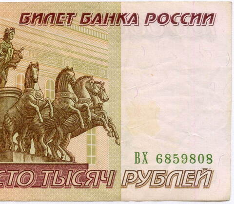 Банкнота 100000 рублей 1995 год ВХ 6859808. VF