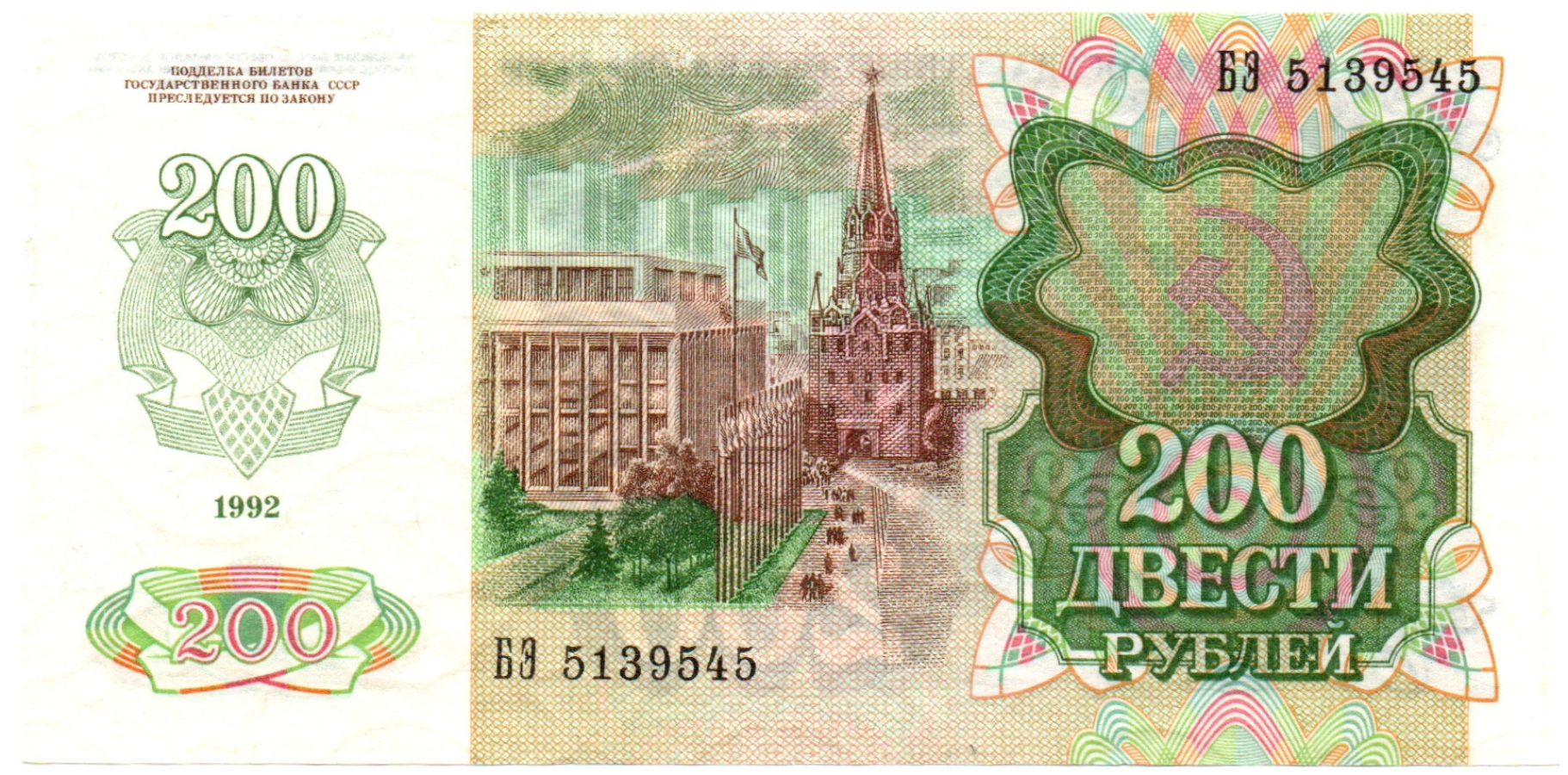 Банкнота 200 рублей 1992 год. БЭ 5139545