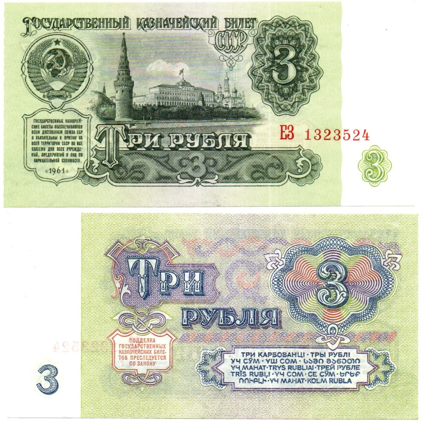 Банкнота 3 рубля 1961 год - ЕЗ 1323524 - UNC - Пресс
