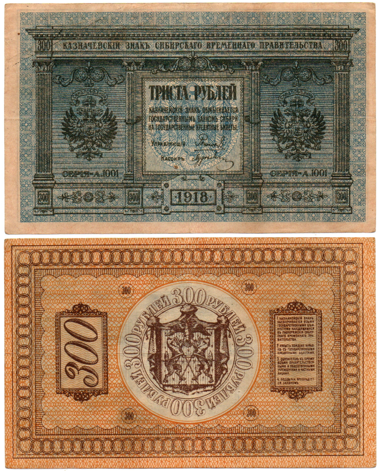 Банкнота 300 рублей 1918 Сибирское Временное Правительство Колчак. XF (Банкнота)