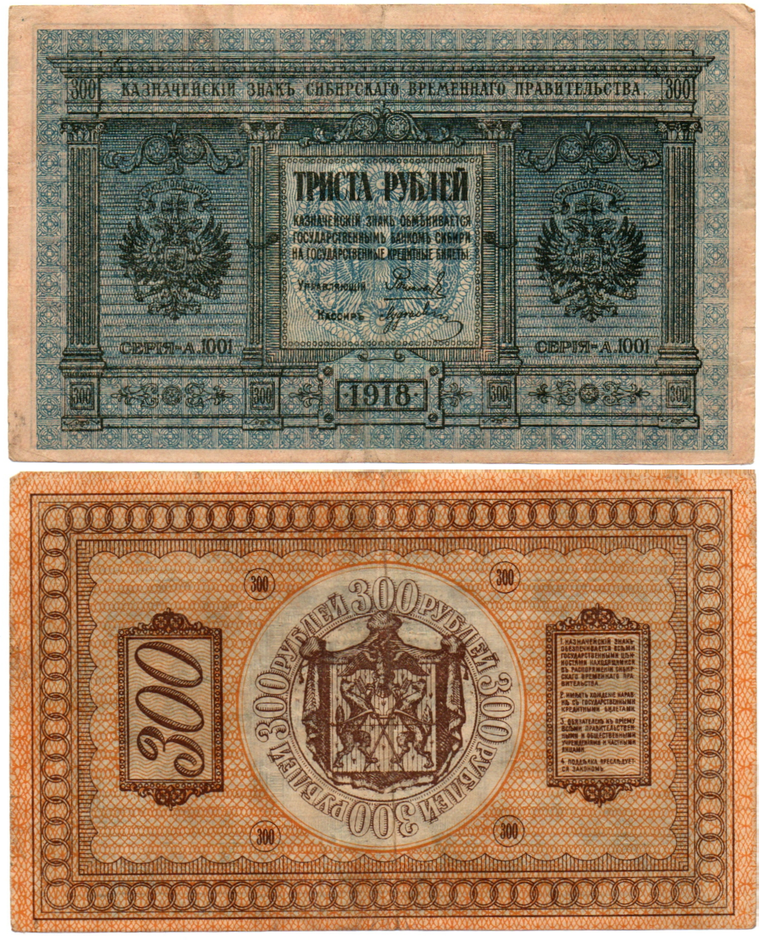 Банкнота 300 рублей 1918 Сибирское Временное Правительство Колчак. XF (Банкнота)