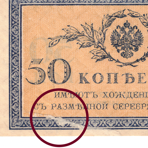 Банкнота 50 копеек 1915 года (есть небольшой надрыв) VG-F