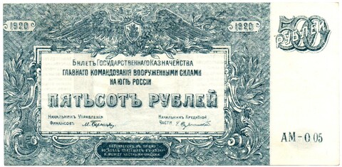 Банкнота 500 рублей 1920 год - Юг России - Серия АМ-005
