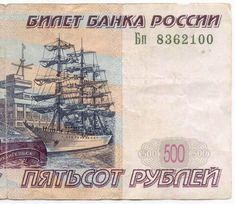 Банкнота 500 рублей 1997 год. Модификация 2004 года Бп 8362100. F- (надрыв 8 мм)