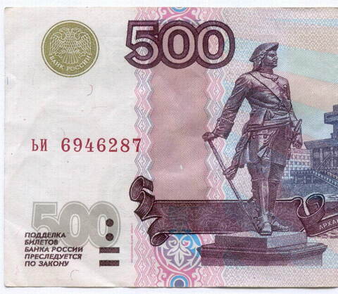 Банкнота 500 рублей 1997 год. Модификация 2004 года ьи 6946287. VF (Нечастая серия - маленькие буквы!)