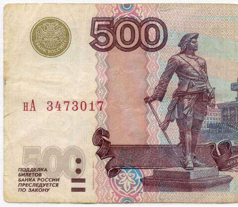 Банкнота 500 рублей 1997 год. Модификация 2004 года нА 3473017. F
