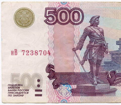 Банкнота 500 рублей 1997 год. Модификация 2004 года нВ 7238704. VF