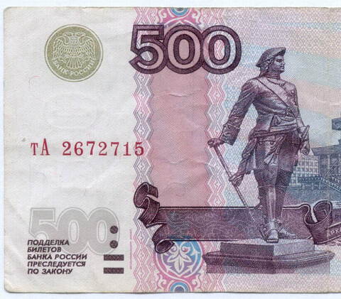 Банкнота 500 рублей 1997 год. Модификация 2004 года тА 2672715. F-VF