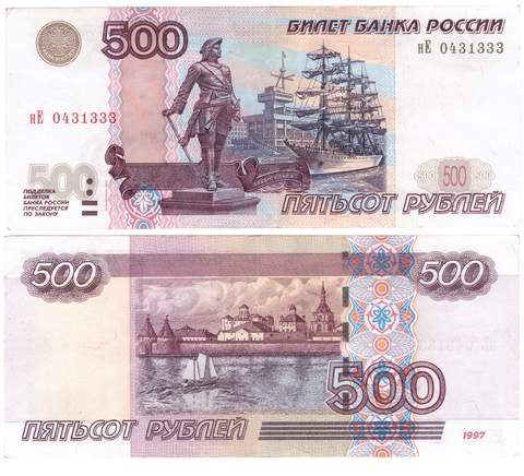 Банкнота 500 рублей 1997 год. Модификация 2004 года VF