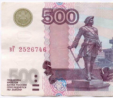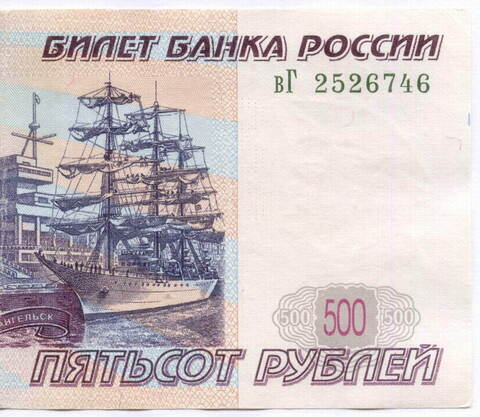 Банкнота 500 рублей 1997 год. Модификация 2004 года вГ 2526746. F (чистка)