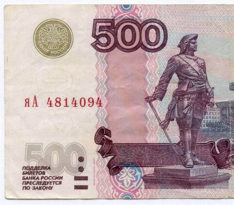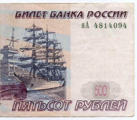 Банкнота 500 рублей 1997 год. Модификация 2004 года яА 4814094. VF-