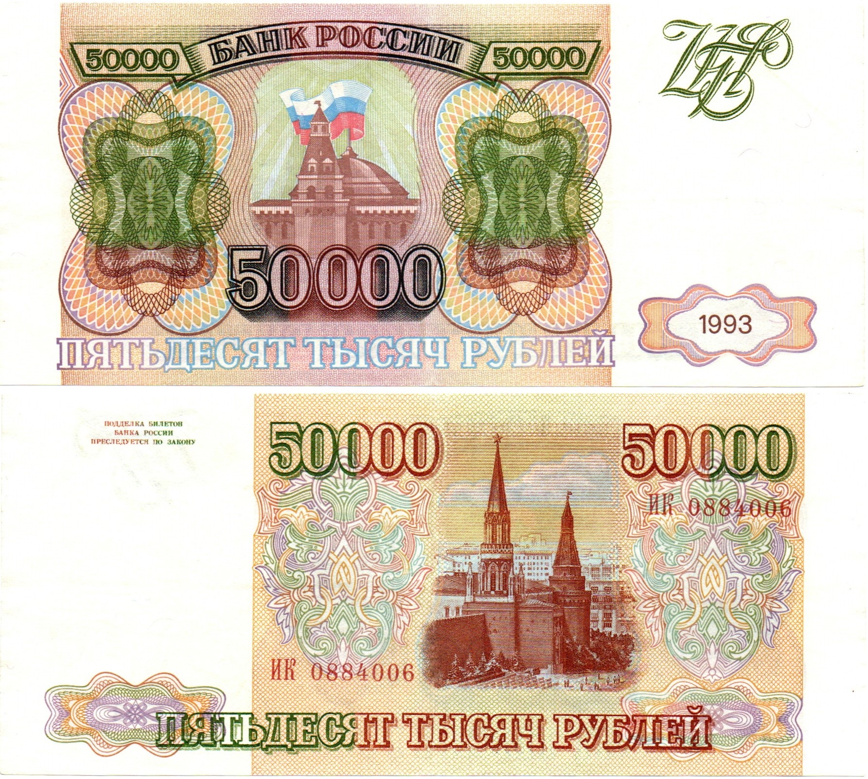 Банкнота 50000 рублей 1993 год Без модификации. ИК 0884006