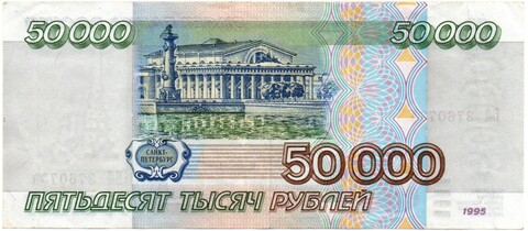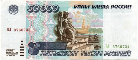 Банкнота 50000 рублей 1995 года XF. Подобная сохранность. Серия и номер случайные.