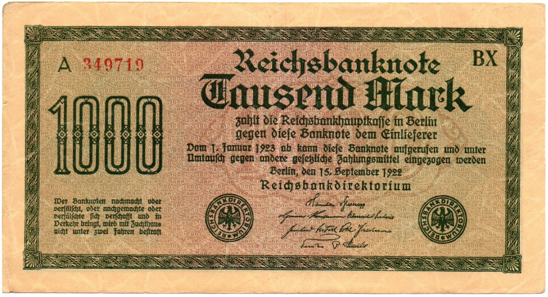 | Номинал: | 1000 марок |