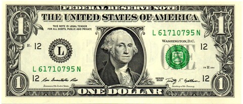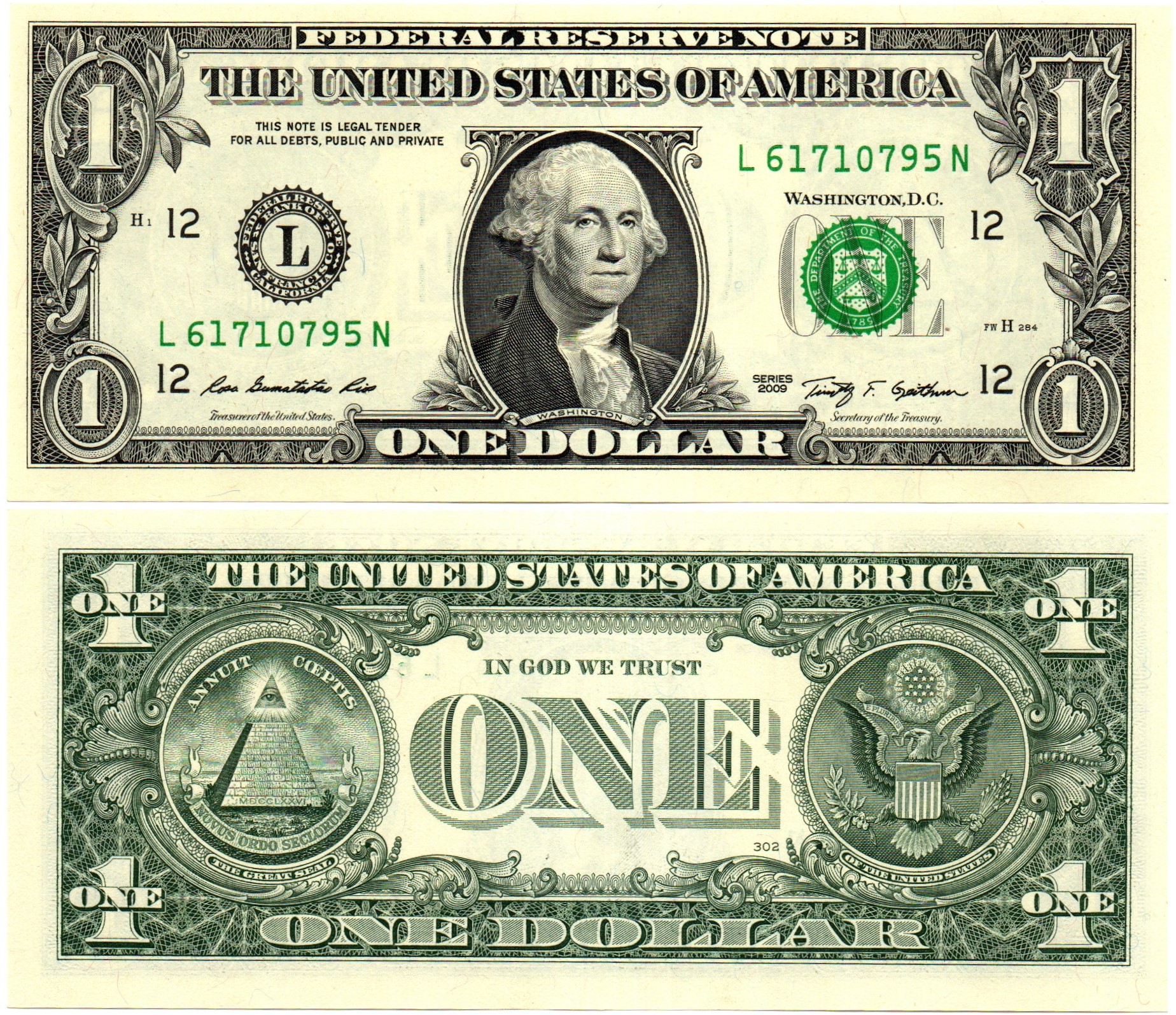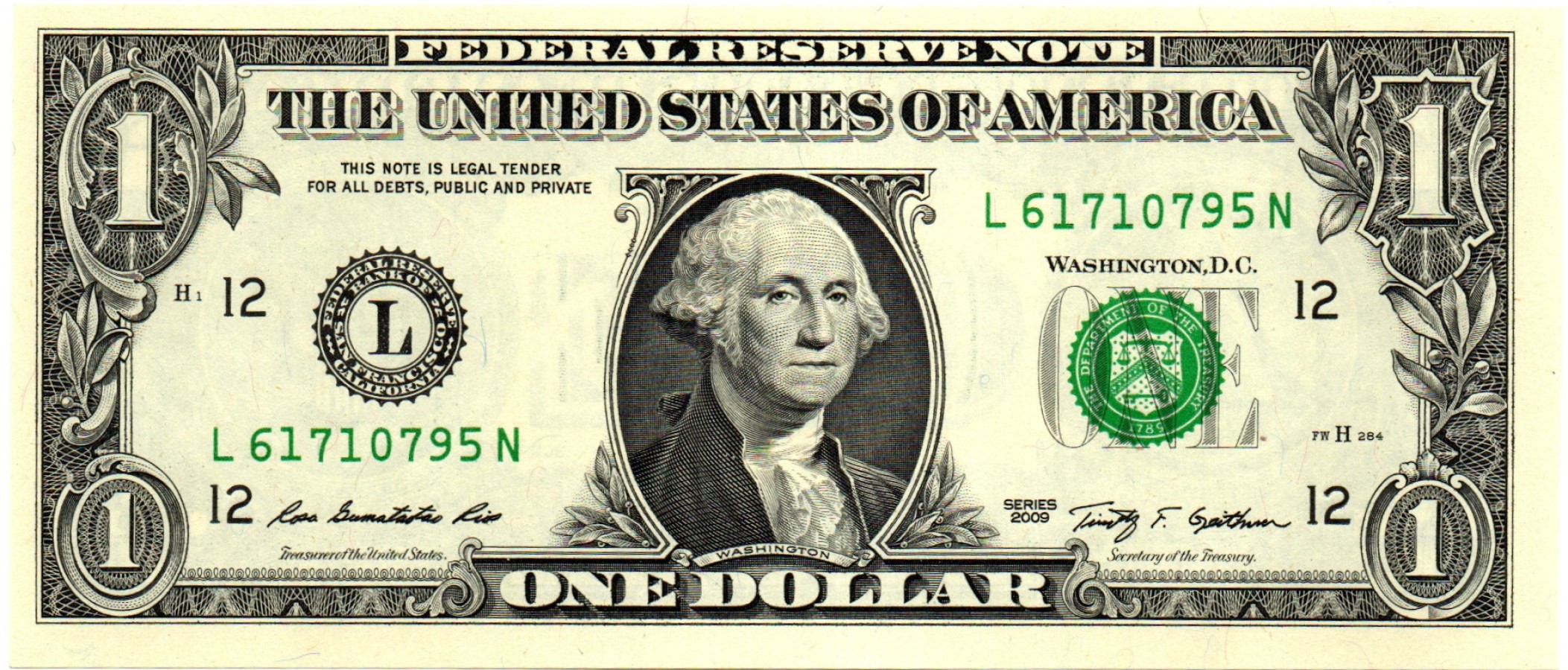 Банкнота США 1 доллар 2009 год - L 61710795 N (Калифорния). AUNC