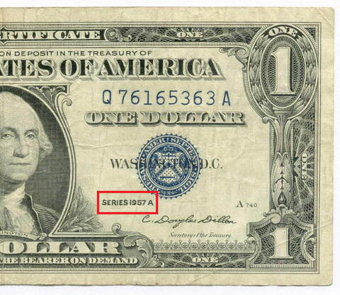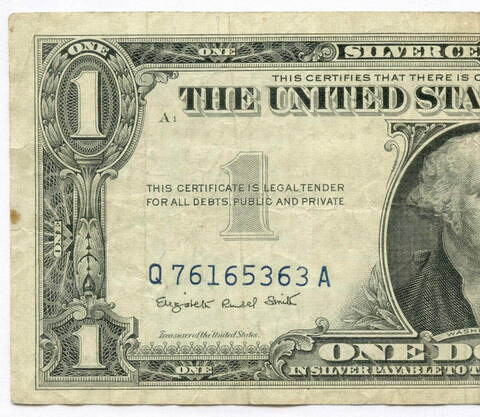 Банкнота США 1 доллар (серебряный сертификат) 1957A Q 76165363 A. VF