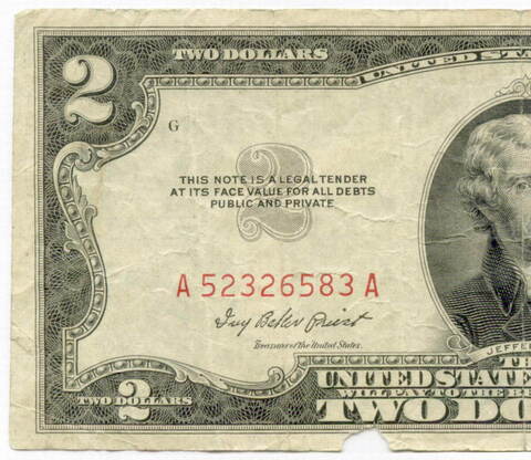 Банкнота США 2 доллара 1953A A 52326583 A. VG