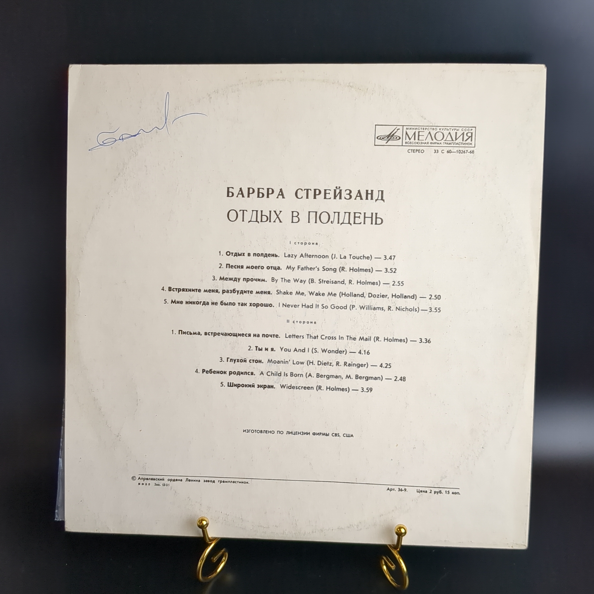 Барбра Стрейзанд - Отдых в полдень - Мелодия Виниловая пластинка 12 дюймов СССР