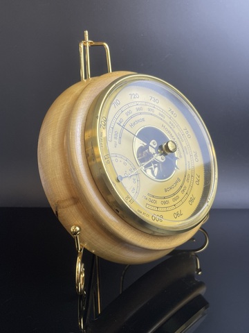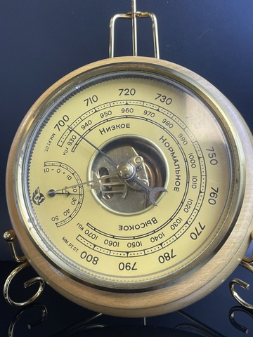 Барометр бытовой настенный круглый Дерево Латунь диаметр 17,5 см Винтаж