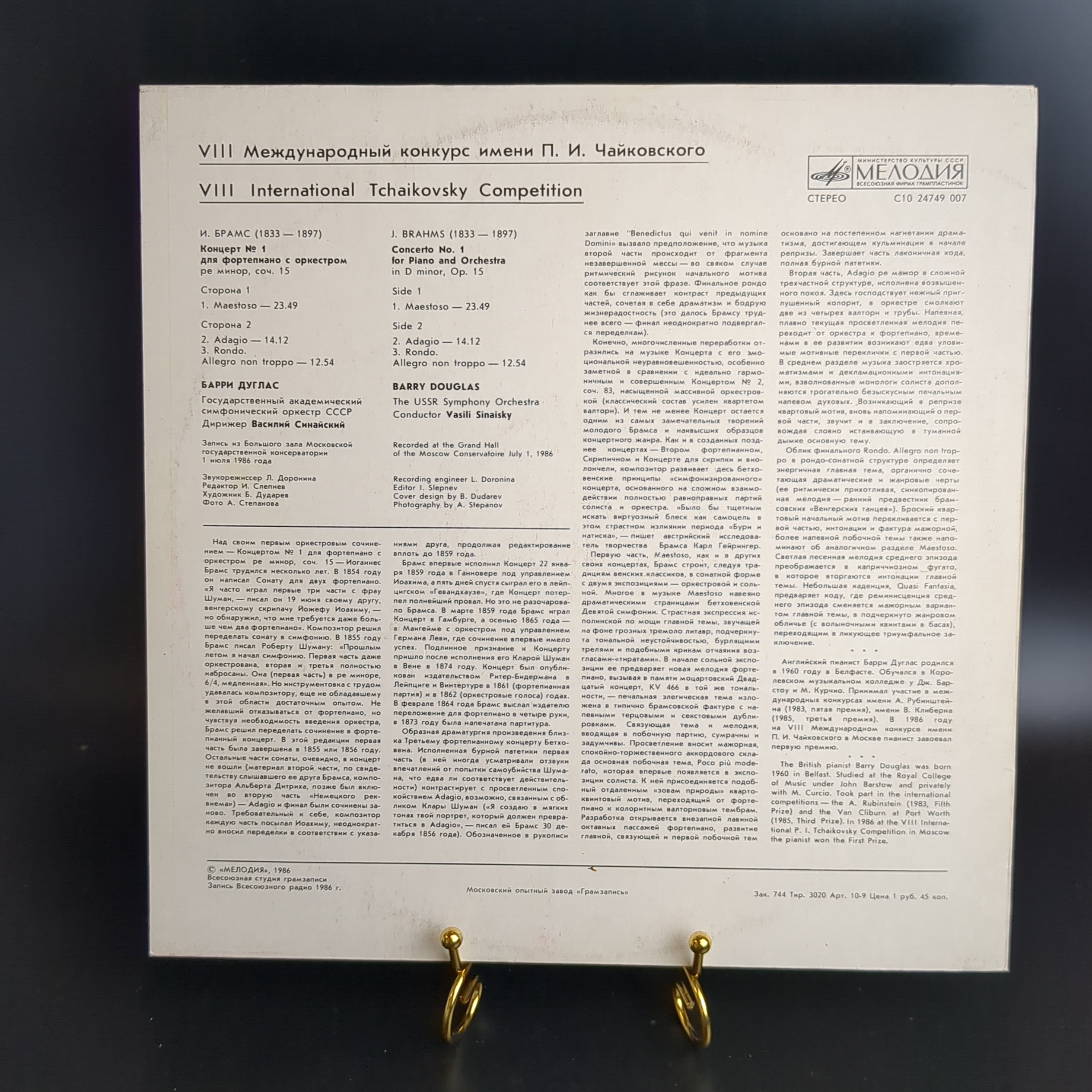 Barry Douglas / Барри Дуглас виниловая пластинка 12 дюймов Брамс - Концерт №1 для фортепиано с оркетром ре минор, соч.15. дирижер Василий Синайский, винтаж СССР Мелодия LP 1986 год