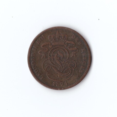 Бельгия 2 цента 1874 г. Нечастая VF-XF