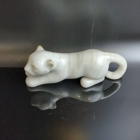 Белый тигр малый Полонский Фарфоровый Завод, роспись, винтаж СССР. лина - 14 см. Состояние на фото
