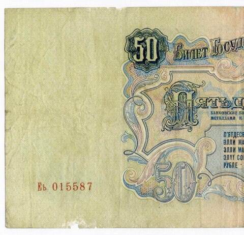 Билет Госбанка 50 рублей 1947 (16 лент) Еь 015587. VG