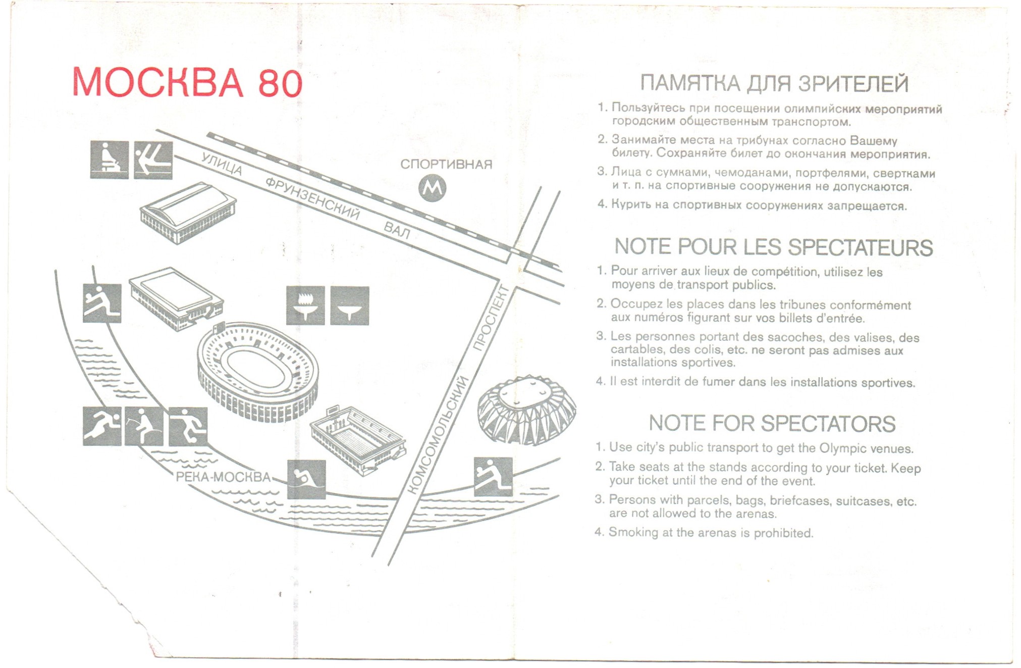 Билет на Олимпийские Игры Москва 80 Легкая атлетика 30. 7. 80 г. XF