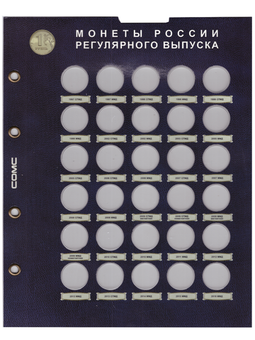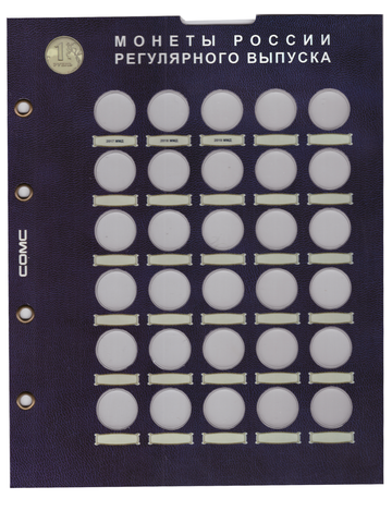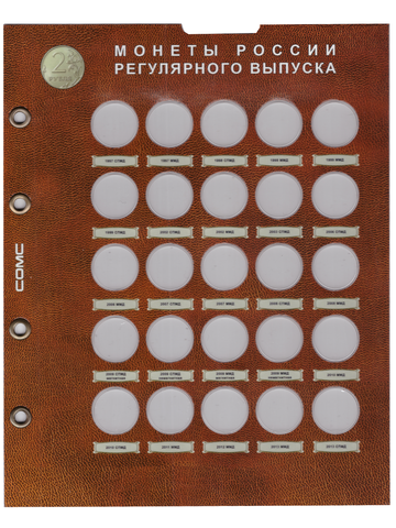 Блистерные листы для монет серии "Регулярный выпуск с 1997 г. от 1 копейки до 10 рублей". Формат "Optima" 200*250 Набор 11 шт. (СОМС)