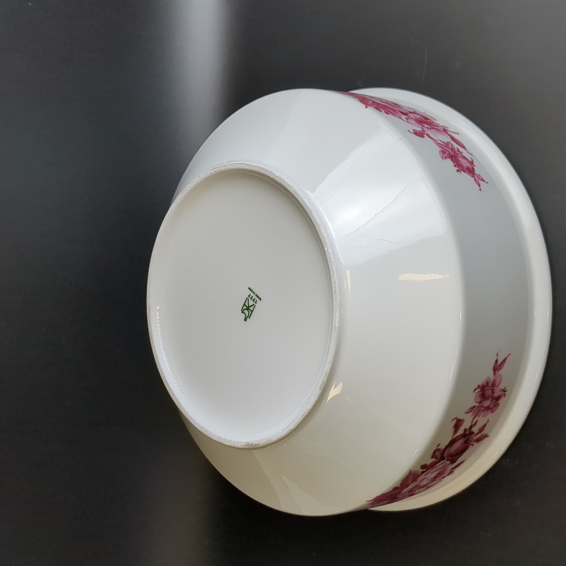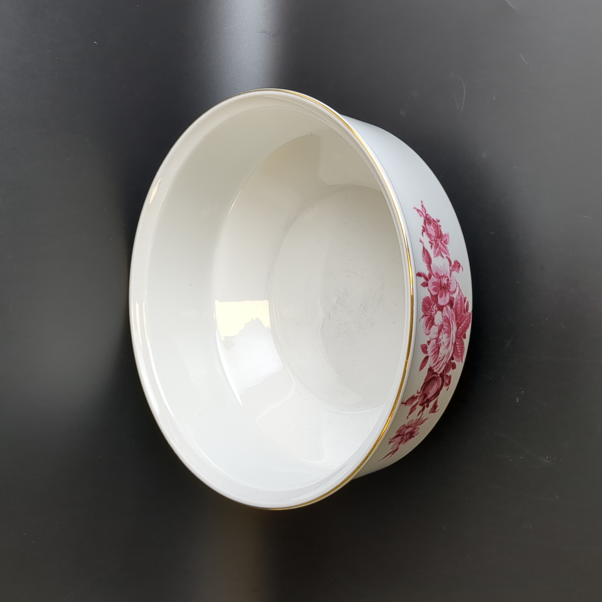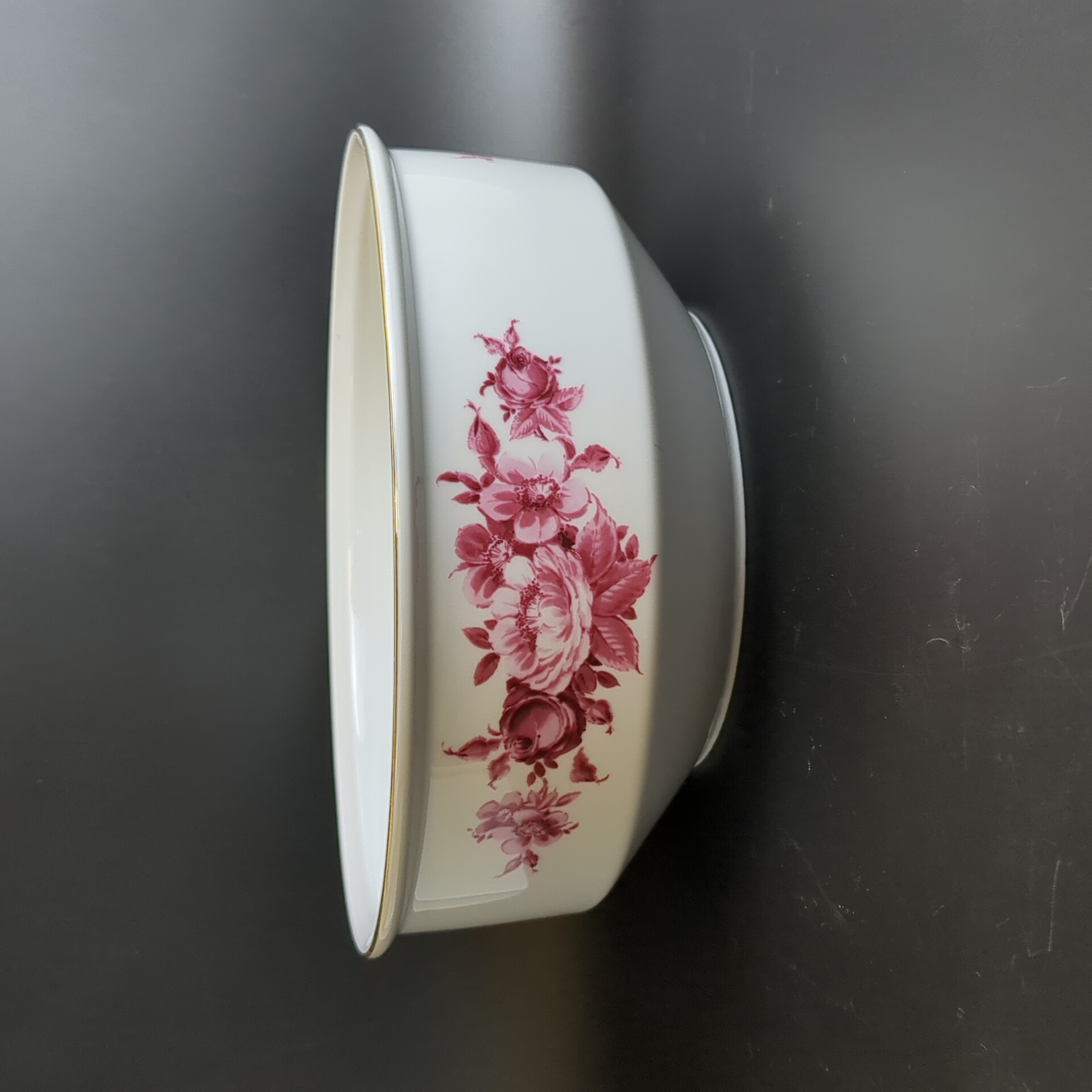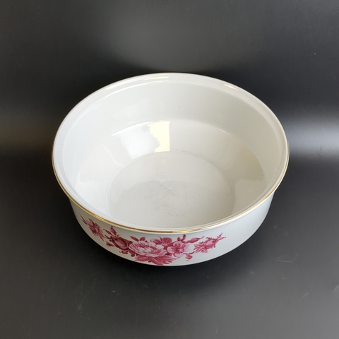 Блюдо салатник большое фарфор клеймо Graf Von Henneberg Porzellan, 1777 Jlmenau, Германия, роспись цветы, золочение, винтаж 1973-1977 гг. Диаметр - 23 см. Высота - 9.5 см. Состояние на фото, присутствуют следы бытования - царапинки на дне
