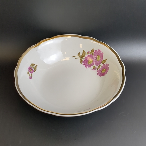 Фарфоровое блюдо для салата с клеймом Дулево ФЗ из периода СССР: винтажная роскошь в вашем доме! Высота - 6 см, диаметр - 22.5 см. Состояние на фото, присутствуют следы бытования.
