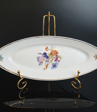 Блюдо сервировочное овальное - селёдочница фарфор, роспись, цветы, Мейсенский букет, Дулево ФЗ, винтаж СССР. Длина - 23 см.
