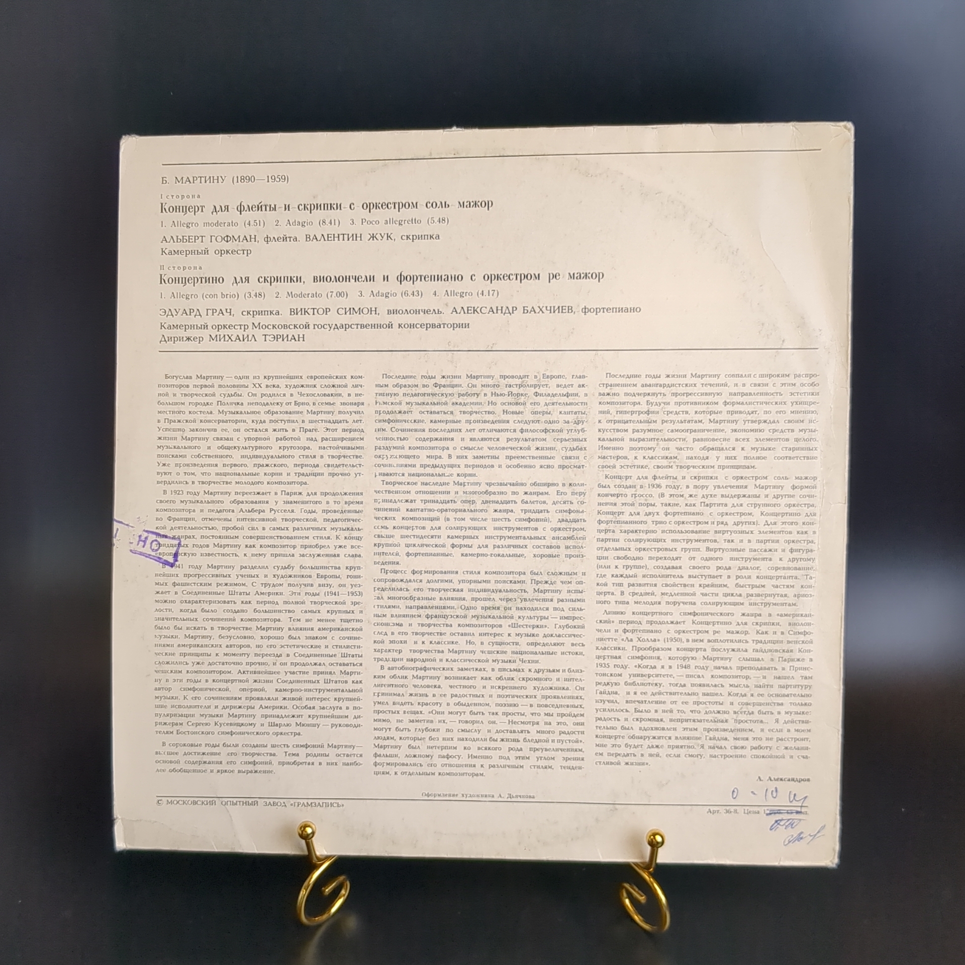 Б.Мартину виниловая пластинка 12 дюймов Концерт для флейты с оркестром, концертино для скрипки, виолончели и фортепиано с оркестром, винтаж классика, LP, СССР Мелодия. Классическая музыка на виниле. Конверт EX- / Диск EX+