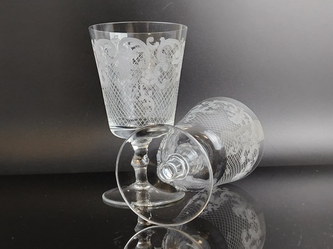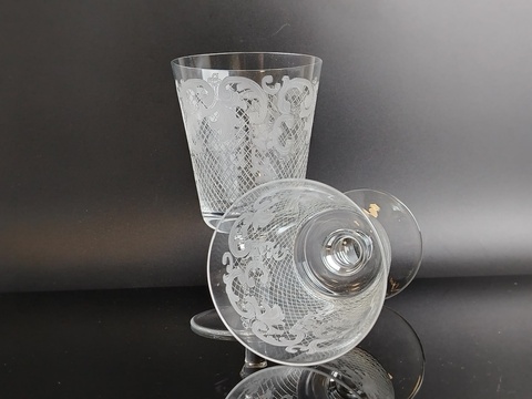 Бокалы 2 штуки редкие Богемское стекло, ажурная пантография,225 мл., высота-14 см, BOHEMIA, винтаж СССР 1970-1990 гг. Состояние бокалов на фото
